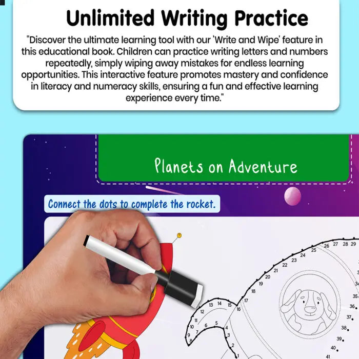 Introducing “My First Space Busy Puzzle Book” – an exciting journey into the cosmos designed to ignite young imaginations. This interactive book is packed with engaging activities, featuring velcro puzzles and wipe-and-write tasks that make learning about space both fun and educational. With velcro activity pages, children can piece together captivating space scenes, fostering creativity and fine motor skills as they match and attach pieces. The wipe-and-write tasks offer an interactive approach to learning, allowing kids to practice tracing shapes, letters, and numbers using the complementary pen. This hands-on experience not only promotes early literacy development but also encourages confidence in writing skills. Crafted with durability in mind, this book is splash-proof and tear-resistant, ensuring it withstands the enthusiasm of young readers. Whether exploring at home or on-the-go, “My First Space Busy Puzzle Book” promises hours of entertainment and learning. So, dive into the cosmos and embark on an out-of-this-world adventure today!